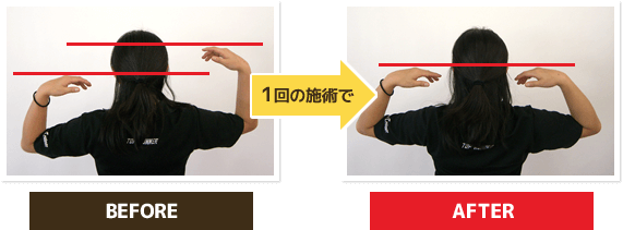 肩だけでなく肘や手などにも疲労がたまって歪んでいました。バランスはすぐ改善されましたが頭痛がとれるまで5回ほどかかりました。自宅での体操も覚えていただき今では元気にすごされています。