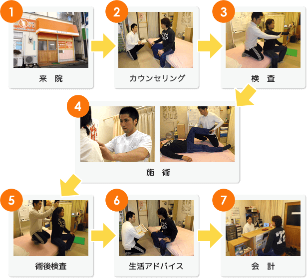 痛みが起こる原因は、人それぞれ違っています。その為、当院ではお客様様一人一人の症状にあった他にはない当院独自の改善法に基づき施術を行っております。